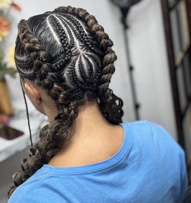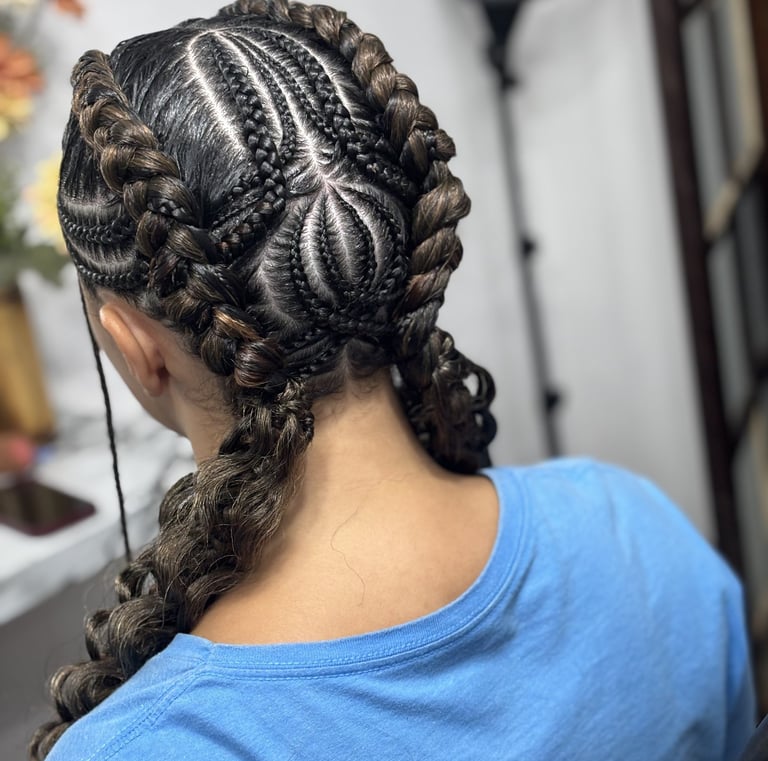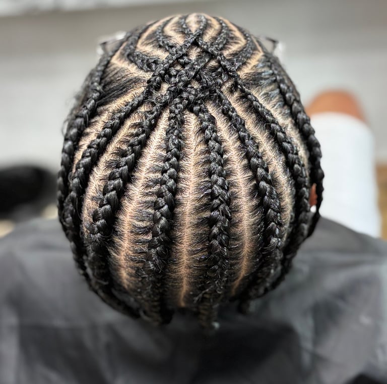 Ghana Braids (trança africana com adição de cabelo ao longo do trançado)