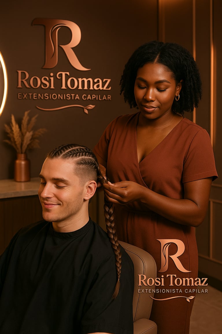 Cabelo aplicado com agulha de crochê em tranças raiz.